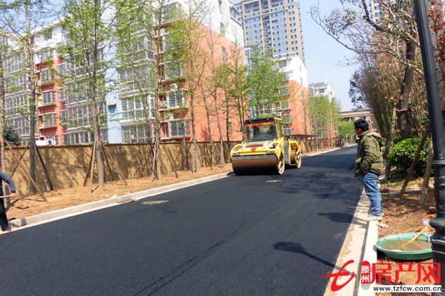 4月14日,在和家園項目現場,一臺大型瀝青攤鋪機正在進行緊張工作,在它身后,一大一小兩臺壓路機將攤鋪完的瀝青路面碾壓平整,10余名工人正用鐵锨將瀝青熟料填補到一些異型路面中,整個施工場面火熱而有序。下午5時,全部路面鋪設完畢。據現場負責人介...