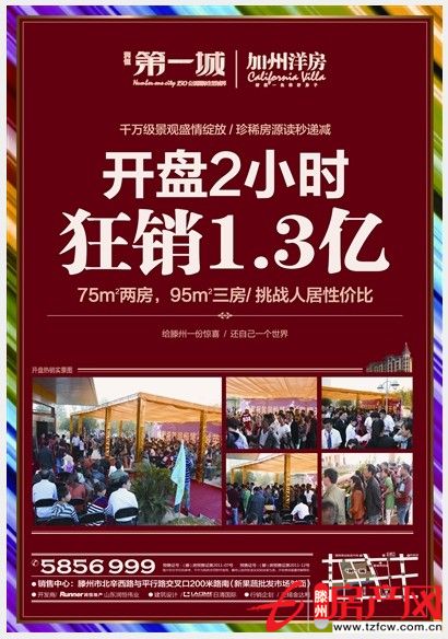 第一城加州洋房千萬級景觀盛情綻放珍稀房源讀秒遞減開盤2小時狂銷1.3億給滕州一份驚喜還自己一個世界銷售中心:滕州市北辛路與平行路交叉口200米路南(新果蔬批發市場對面)銷售熱線:0632-5856999...