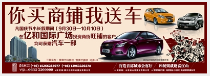 你買商鋪我送車凡在國慶節小長假期間(9月30日-10月10日)在億和國際廣場投資商街旺鋪的客戶均可獲贈汽車一部營銷中心地址;滕州市北辛路與新興路十字路口24小時投資顧問:15266265977/13963229278VIP專線:0632-5...
