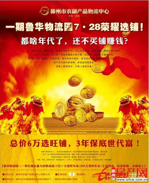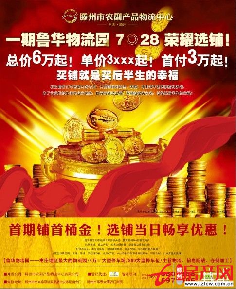 滕州市農副產品物流中心——都啥年代了,還不買鋪賺錢?一期魯華物流園7.28榮耀選鋪,總價6萬選旺鋪,3年保底世代富!魯華物流園——棗莊地區最大的物流園,5萬㎡大型停車場,800大型停車位,主營物流,信息配載,倉儲加工。財富熱線;0632——...