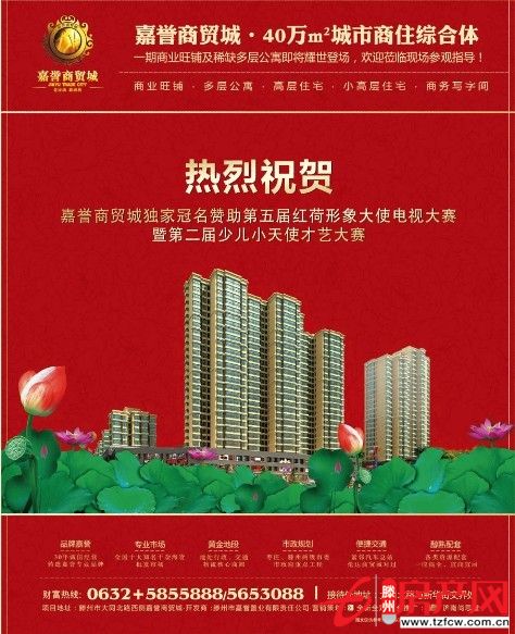 熱烈慶祝嘉譽商貿城獨家冠名贊助第五屆紅荷形象大使電視大賽暨第二屆少兒小天使才藝大賽!滕州市嘉譽商貿城是全國的干雜海貨、農產品加工批發中心,商貿城主要直銷全國各地干雜品、調味品、海產品、土特產品、中藥材等。2004年新建設的嘉譽商貿城占地10...