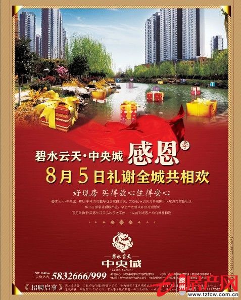 碧水云天·中央城感恩季好現房,買的放心住得安心。7月15日感恩禮謝全城,早上十點鐘開啟謝禮活動。百元購物卡/實惠生活用品歡樂送不停,十點前到場客戶均有好禮相送?!?6萬平米32棟樓宇現房震撼呈現★20多億巨資實力再現滕州人居典范樣板社區熱線...