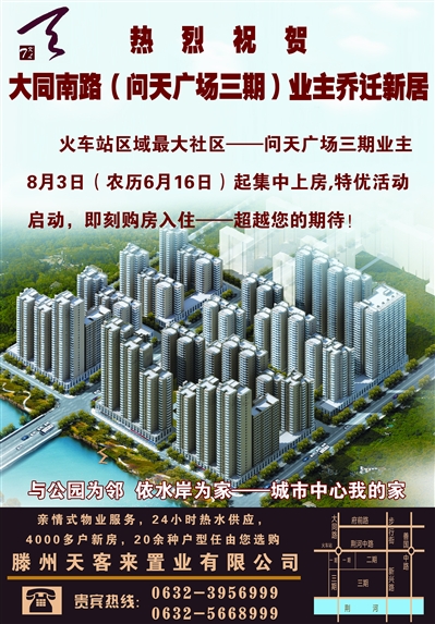 熱烈祝賀問天廣場三期業主喬遷新居!?。?月3日起集中上房,特優活動啟動,即刻購房入住——超越您的期待!貴賓熱線:0632—39569995668999...