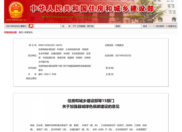 6月8日,住房和城鄉建設部、科技部、工業和信息化部等15部門發布關于加強縣城綠色低碳建設的意見。意見顯示,深入貫徹落實黨的十九屆五中全會精神和“十四五”規劃綱要部署要求,推進縣城綠色低碳建設。意見指出,嚴格落實縣城綠色低碳建設的有關要求,控...