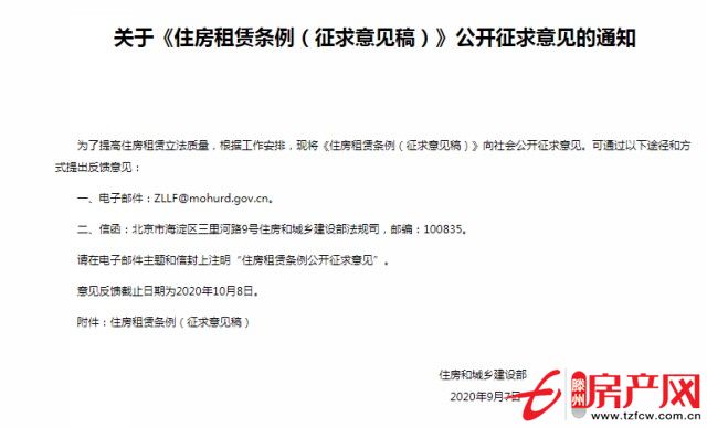 2020年9月7日,住建部官網發布“關于《住房租賃條例(征求意見稿)》公開征求意見的通知”。通知表示,為了提高住房租賃立法質量,根據工作安排,現將《住房租賃條例(征求意見稿)》向社會公開征求意見。住房租賃條例(征求意見稿)全文如下:Q...