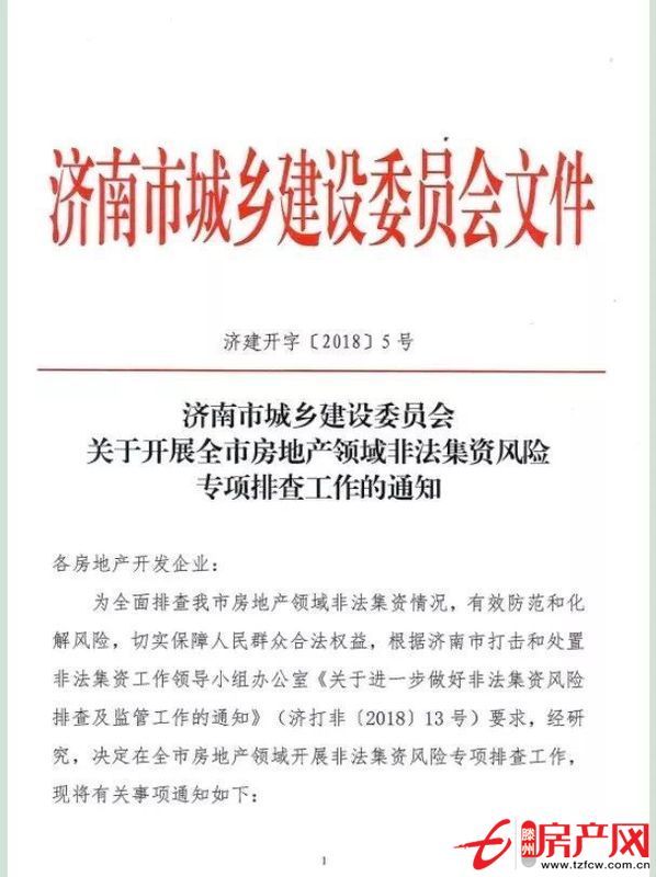 記者從濟南市城鄉建設委了解到,5月22日起至6月30日,濟南將在全市房地產領域開展非法集資風險專項排查行動,重點排查以房地產開發建設、預售房屋、返本銷售或售后包租、利用互聯網平臺開展房地產金融業務為名的非法集資。根據市城鄉建設委印發的《關于...