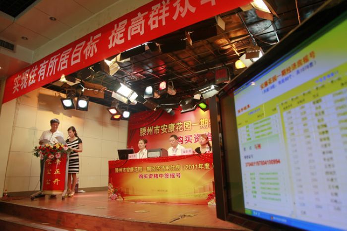 5月25日,滕州市安康花園一期經濟適用住房(2011年度)搖號選房活動在滕州劇院舉辦。領取了《滕州市城鎮居民購買經濟適用住房核準通知書(安康花園一期)》的購房戶,一大早懷著急切的心情來到會場等待搖號選房。歷時6個多小時,1079戶家庭成功選...