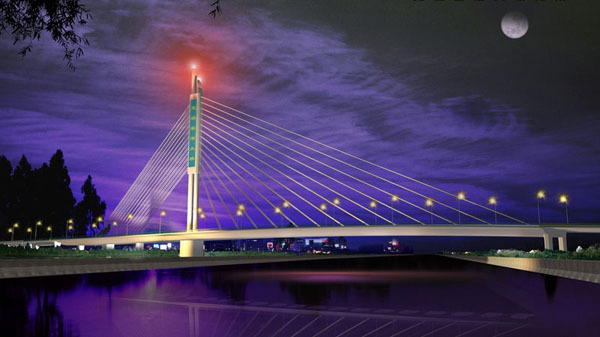 解放路跨荊河大橋工程位于我市兩河治理關鍵景觀節點位置,是荊河兩岸生態休閑長廊建設的重要組成部分,是解放路貫穿城市東西主干道的咽喉。工程總投資1.2億元,設計為鋼箱梁斜拉橋,由中國市政工程華北設計研究總院設計,由山東滕建投資集團投資建設。該橋...